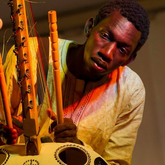 Mbye Ebrima é um jali: mestre de música e palavra – conhecedor de história, cantor e tocador de kora.