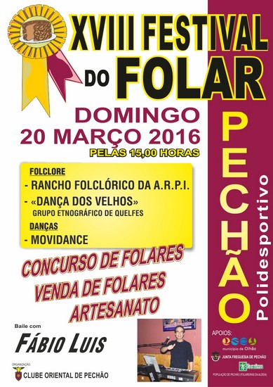 Vai pelo 18º Ano consecutivo o Clube Oriental de Pechão organizar o Festival do Folar mais antigo da região, promovendo desta forma os produtos regionais mais apreciados nesta época da Páscoa.