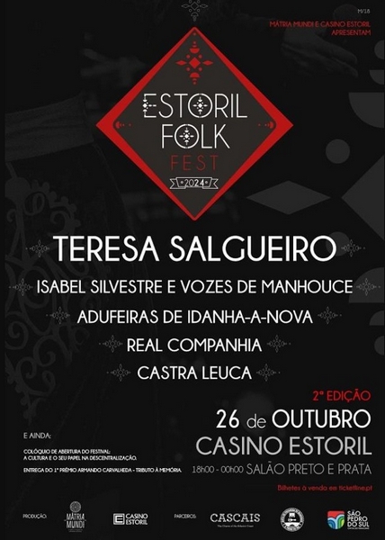 A segunda edição do Estoril Folk Fest está agendada para o dia 26 de Outubro no Casino Estoril. O festival começa às 18h00, no Lounge D e decorre, a partir das 20h15, no Salão Preto e Prata. M/18. Preços dos bilhetes: 15€ a 30€