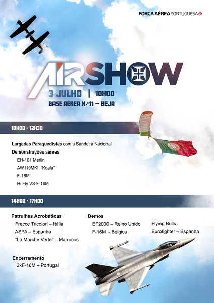 Estarão presentes as patrulhas acrobáticas: Frecce Tricolori, da Força Aérea Italiana, “La Marche Verte” da Força Aérea Marroquina, e “ASPA”, da Força Aérea Espanhola, e as aeronaves: F-16M, da Bélgica, EF2000, do Reino Unido, Eurofighter, de Espanha e Flying Bulls.