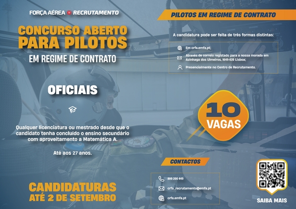 Força Aérea abre concurso para admissão de Pilotos em Regime de ContratoAtenção! Este portal usa cookies. Ao continuar a utilizar o portal concorda com o uso de cookies. Saber mais...