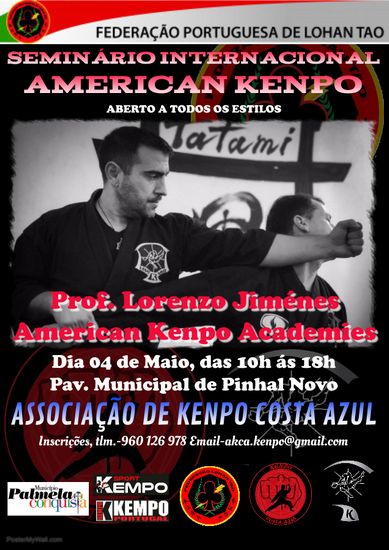 O Pavilhão Municipal de Pinhal Novo vai receber, a 4 de maio, entre as 10h00 e as 18h00, um Seminário Internacional de American Kenpo, ministrado pelo Professor Lorenzo Jiménez, da American Kenpo Academies. A iniciativa é organizada pela Associação de Kenpo Costa Azul, com o apoio da Federação Portuguesa de Lohan Tao e da Câmara Municipal de Palmela.