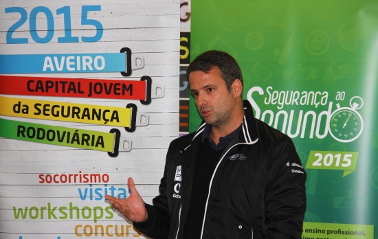 O piloto português esteve esta semana em escolas de Aveiro, Porto e Almada, onde apresentou o equipamento de segurança que utiliza em competição, sublinhando sempre a importância da prevenção rodoviária e explicando as diferenças entre conduzir na estrada e em competição.