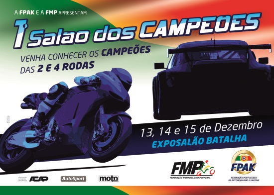 É já este fim-de-semana de 13 a 15 de Dezembro que se realiza o 1º Salão dos Campeões, uma organização conjunta da Federação Portuguesa de Automobilismo e Karting (FPAK) e a Federação de Motociclismo de Portugal (FMP).