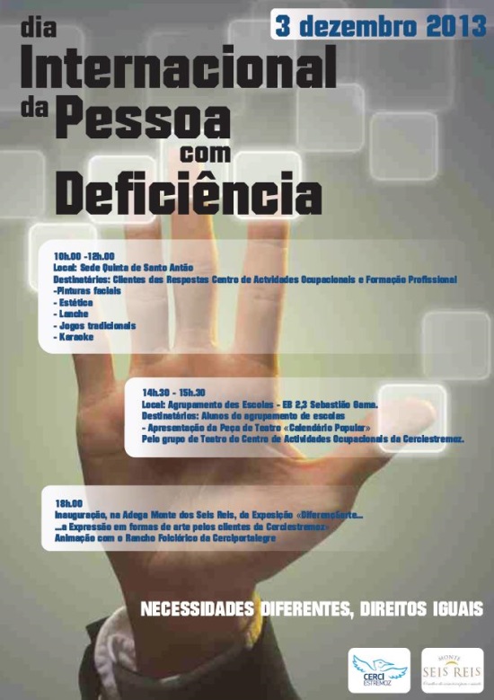 Comemorações do Dia Internacional da Pessoa com Deficiência em EstremozPublicado em quinta-feira, 28 de novembro de 2013 | Imprimir fShare Tweet Anterior Seguinte
