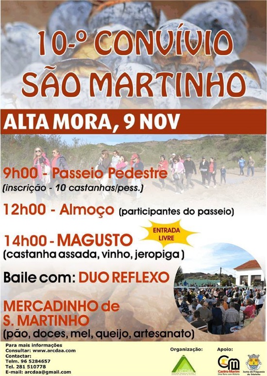 A Associação Recreativa, Cultural e Desportiva dos Amigos de Alta Mora (ARCDAA) assinala a 9 de novembro o Dia de São Martinho, com a realização de um convívio na Cumeada da Alta Mora, da freguesia de Odeleite.