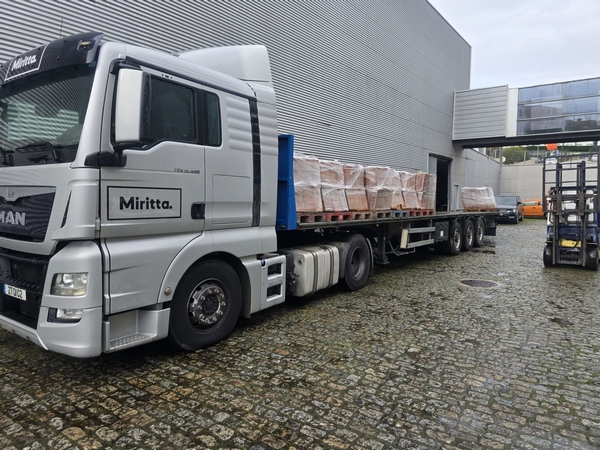 Portugal foi atingido por enorme temporal com a passagem da tempestade Kristin que arrasou o centro do país, nomeadamente, a região de Leiria. Numa ação solidária, o Grupo Miritta e o Grupo S.Pintos decidiram enviar camiões com significativo número de telhas para ajudar a reconstruir muitos dos telhados que foram destruídos por ação desta tempestade.
