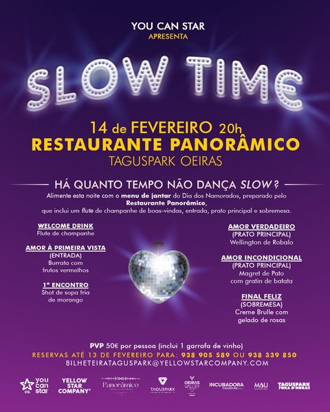 O Restaurante Panorâmico, no TagusPark, em Oeiras, celebra o Dia de São Valentim com uma noite de slow.