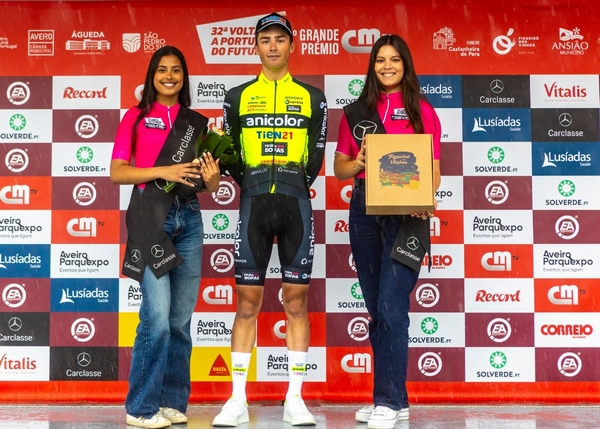 Tiago Santos, da Equipa Profissional de Ciclismo Anicolor / Tien21, venceu hoje a 3.ª Etapa da 32.ª Volta a Portugal do Futuro / 5.º Grande Prémio CMTV e assumiu a liderança da Juventude, envergando a Camisola Branca. O Sub-23 da estrutura de Águeda fez uma etapa de sonho. Após integrar uma fuga de 87 km, teve a ousadia de atacar na primeira passagem pela meta e erguer os braços no final, conquistando a sua primeira vitória como profissional. Com este triunfo, Tiago Santos “saltou” do 13.º lugar da Classificação Geral para o 3.º mais importante lugar do pódio, estando a 01m07s do líder, que continua a ser Lucas Lopes (Rádio Popular-Paredes-Boavista).