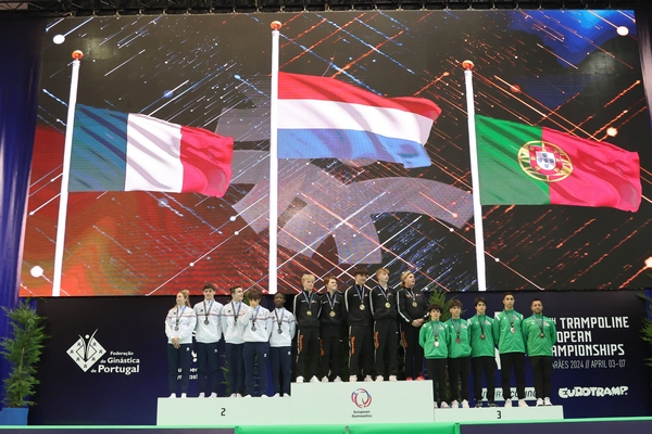 A Seleção Nacional de Trampolins venceu, esta quarta-feira, uma medalha de Bronze no Campeonato da Europa de Trampolins que se encontra a decorrer em Guimarães. Martim Lopes, Gonçalo Costa, Lucas Gregório e Pedro Mendes conquistaram o terceiro lugar por equipas, no escalão de Juniores, na competição de Trampolim Masculino.
