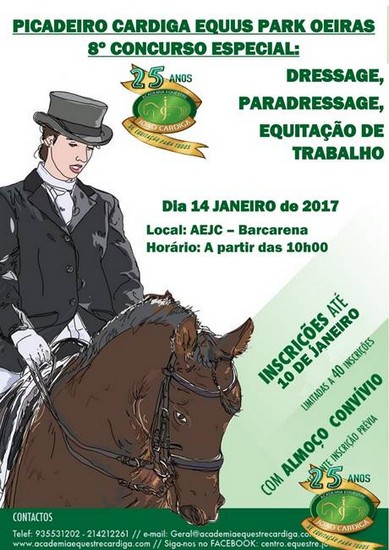 No ano em que comemora 25 anos de atividade, a Academia Equestre João Cardiga, vai iniciar 2017 (14 Janeiro) com a inauguração de um novo espaço dedicado a competição, para pessoas com e sem deficiência - o CARDIGA EQUUS PARK OEIRAS, nas instalações de Leceia, Barcarena, Oeiras.