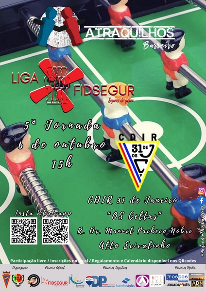 A 5ª jornada da Liga Fidsegur está marcada para o próximo dia 6 de outubro, nas instalações do 31 de Janeiro "Os Celtas", na freguesia do Alto Seixalinho, Barreiro. Esta etapa promete ser mais um emocionante capítulo do circuito de Matraquilhos, que tem vindo a cativar atletas e entusiastas do desporto.