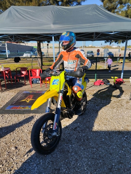 A troca de motos vai exigir adaptação, mas ele já está a fazer esse trabalho: fizemos o nosso primeiro treino com a nova moto no Campera karting que são nossos patrocinadores e obtivemos sensações incríveis com um muito bom andamento.