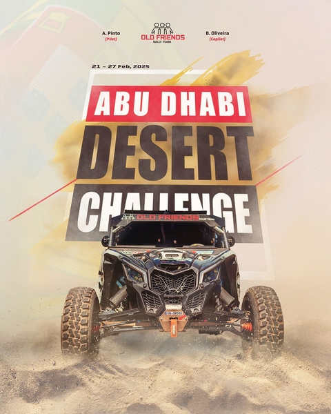 Depois da brilhante prestação no Dakar Rally 2025 de onde saíram na liderança do Campeonato do Mundo, Alexandre Pinto e Bernardo Oliveira seguem agora para a segunda etapa da competição principal do todo-o-terreno mundial, o Abu Dhabi Desert Challenge competição que, nos próximos dias, arranca nos Emirados Árabes Unidos. A dupla do Old Friends Rally Team que lidera o Campeonato do Mundo de Rally Raid na Categoria SSV irá por isso ostentar o nº 401 no seu Can-Am Maverick XRS Turbo RR.