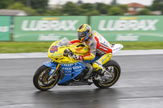 Miguel Praia conseguiu hoje em Curitiba ser o piloto mais rápido no primeiro dia daquela que será a derradeira prova do campeonato Moto 1000GP 2015. Aos comandos da Honda CBR 1000R SP com as cores da Center Moto o piloto de Albufeira não se deixou atemorizar pelas condições exigentes que se fizeram sentir, e que ditaram mesmo a ausência de pilotos em pista na terceira sessão de treinos livres devido a uma forte chuvada que se iniciou assim que os pilotos saíram para a pista. Todos regressaram de imediato ás suas boxes e assim foram os registos da segunda sessão, realizada com tempo seco, que ditaram o resultado combinado do dia, com Miguel Praia a ser o mais rápido, Praia que no entanto não evitou uma queda nos 3.695 metros da pista paranaense.