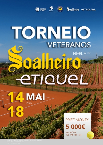 Tudo pronto para receber mais uma prova A do circuito nacional de veteranos, com a realização do Torneio Veteranos Soalheiro Etiquel, que vai animar os courts de terra batida do Clube de Ténis do Porto, de 14 a 18 de Maio.