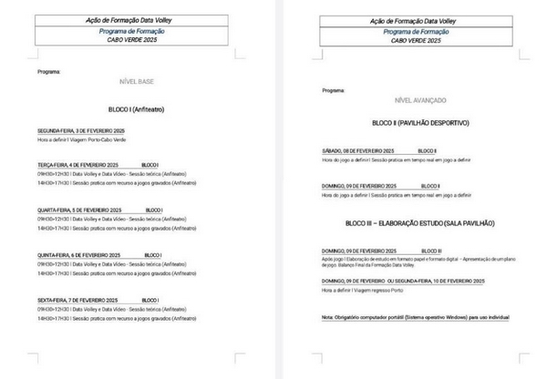 A Federação Cabo-Verdiana de Voleibol organiza, de 3 a 9 de Fevereiro, na cidade de Mindelo (ilha de São Vicente), uma formação de Data Volley, ministrada por Hugo Silva e por João Campos, respectivamente Seleccionador e Scouter da Selecção Nacional de Seniores Femininos.