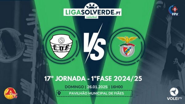 O líder SL Benfica visita o CD Fiães (8.º), em jogo que poderá ser seguido em directo (16h00) na Volei TV e A Bola TV.