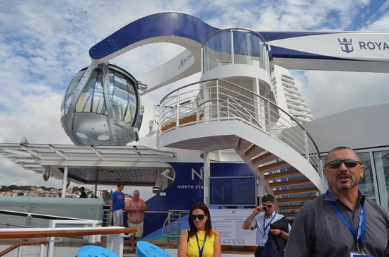 Mas porque" fazer" um Cruzeiro não é apenas ,comer, beber e olhar para o mar, o "prédio envidraçado flutuante " conta também com entretenimento para os seus passageiros ,como ,8 piscinas ,casino , teatro ,lojas , laboratório fotográfico,um simulador de paraquedismo ( bolsa de gravidade ZERO ) e a North Star- cápsula de vidro para passeio de 360 grau,s elevada numa grua a uma altura de 90 metros. Esta Estrela do Norte( com a capacidade para 14 pessoas) dá a possibilidade de fotografar o navio , como ,por exemplo, o estivesse a vê-lo de helicóptero. Muito mais haveria a dizer sobre este navio , mas deixo assim o apetite para quem possa aproveitar o que ainda de bom existe neste planeta.