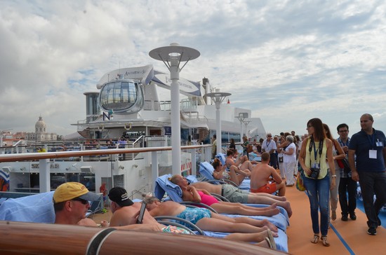 Integrado num grupo de leitores do Jornal DESTINOS , foi-me dada possibilidade de "embarcar" num dos maiores navios do mundo, para poder conhecer, quase "in-loco" ,o que é o universo de um transporte marítimo cuja área se assemelha a um quarteirão de uma grande cidade. Estou a falar do ANTHEM OF THE SEAS , gigante dos mares,inaugurado em 22 de abril de 2015, e que atracou pela segunda vez em Lisboa ,mais precisamente no Terminal de Cruzeiros do Jardim do Tabaco ,em Sta. Apolónia.