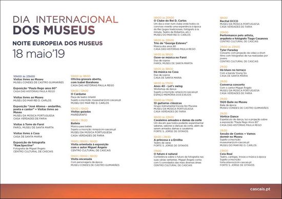 Este ano o DIA INTERNACIONAL DOS MUSEUS e a NOITE EUROPEIA DOS MUSEUS celebram-se no mesmo dia e a Câmara Municipal de Cascais, juntamente com a Fundação D. Luís, voltam a apostar numa programação diversificada, complementar, pensada para todos os públicos, que inclui todos os equipamentos do Bairro dos Museus.