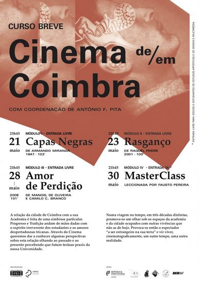 A relação da cidade de Coimbra com a sua Academia é feita de uma simbiose particular. Progresso e Tradição andam de mãos dadas com o espírito irreverente dos estudantes e os amores despertados nas tricanas. Através do Cinema queremos dar a conhecer algumas perspectivas sobre esta relação olhando ao passado e ao presente percebendo que futuro terão as praxis da nossa Universidade.