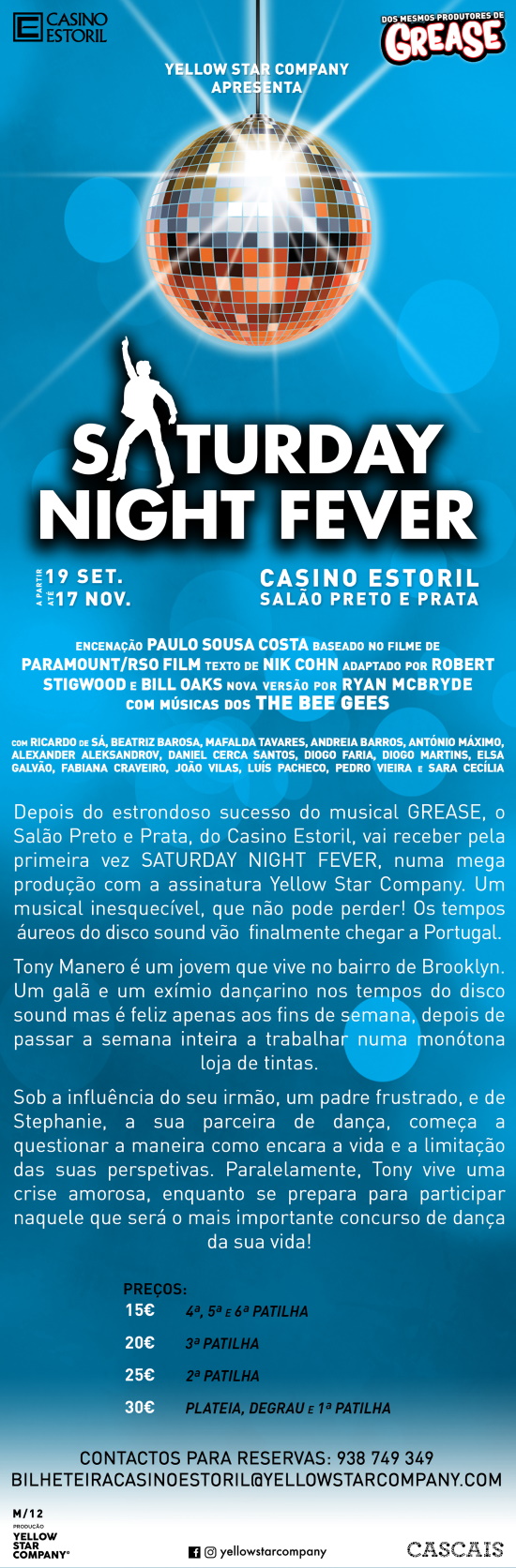 Saturday Night Fever - Estreia no Salão Preto e PrataPublicado em quarta-feira, 7 de agosto de 2019 | Imprimir fShare Tweet Anterior Seguinte