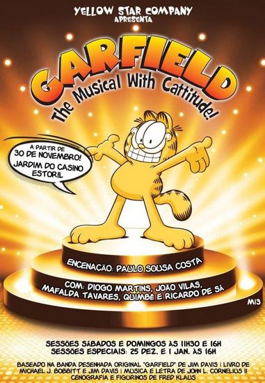 Os Jardins do Casino Estoril, a partir de 30 de Novembro, um ciclo de representações de “Garfield, Um Musical com Gatitude”. Espectáculos agendados aos Sábados e Domingos, às 10h00, 11h30, 14h00 e 16h00. M/3. Bilhetes: €15 a 55€