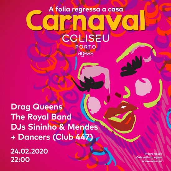 A programação do Coliseu Porto Ageas reservou uma surpresa para 2020: uma grande festa de Carnaval, na noite de 24 de fevereiro. Recuperando a tradição dos eventos “Carnaval Só no Coliseu”, que marcaram os anos 40, 50 e 60 na cidade do Porto, o Coliseu reencontra-se assim com a sua história e dá-lhe a contemporaneidade do Século XXI.