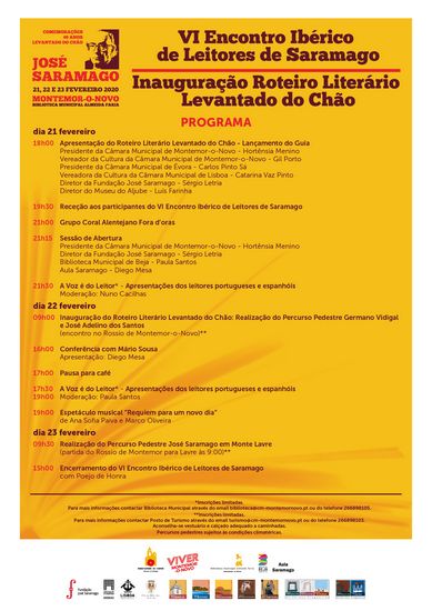 Foi a 22 de fevereiro de 1980 que José Saramago deu à estampa a obra Levantado do Chão. Passados 40 anos, os Municípios de Montemor-o-Novo, Beja, Évora e Lisboa, e as instituições portuguesas Museu do Aljube e Fundação José Saramago, e a espanhola Aula Saramago, juntam-se para apresentar ao público o VI Encontro Ibérico de Leitores de Saramago e a Inauguração do Roteiro Literário Levantado do Chão.