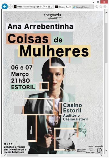 Outras bilheteiras: Casino Estoril, FNAC, Worten, CTT e locais habituais