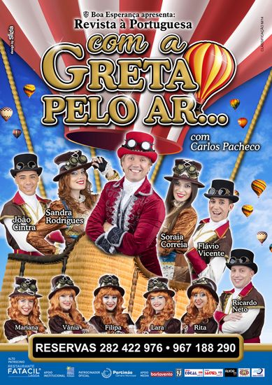 Iniciativa originalmente carnavalesca, a revista à portuguesa do Boa Esperança tem evoluído e já se transformou num espetáculo com projeção nacional. Exemplo disso é este novo desafio, cheio de humor e ritmo, onde o espetador acompanhará a viagem mm balão de ar quente protagonizada pela pequena sueca “Greta”, que estará acompanhada pelos amigos na demanda por uma solução para a preservação do planeta… Ou será que arranjaram uma maneira airosa para faltarem à escola?