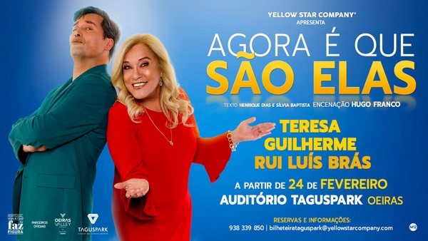 A Yellow Star Company, de Carla Matadinho e Paulo Sousa Costa, apresenta “Agora é que são elas”. Uma comédia com Teresa Guilherme e Rui Luis Brás. Em cena no Auditorio do Taguspark a partir de dia 24 de fevereiro.