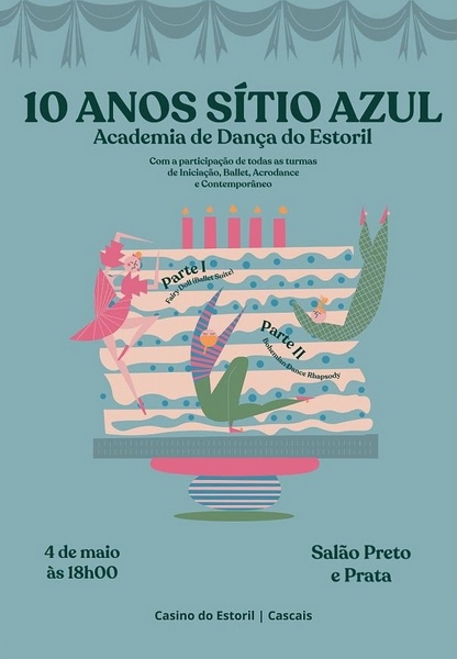 O Salão Preto e Prata do Casino Estoril acolhe, no próximo dia 4 de Maio, pelas 18 horas, o espectáculo “Sitio Azul” da Academia de Dança do Estoril. M/6. Preço: De 13,5€.