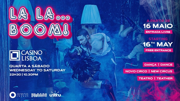 O Casino Lisboa estreia, na próxima Quinta-Feira, dia 16 de Maio, pelas 22h30, o espectáculo “La La... Boom!” no Arena Lounge. Os visitantes do Casino Lisboa poderão assistir a um espectáculo inédito que concilia surpreendentes momentos de novo circo, dança, música e teatro. Uma original produção: Laboratório / UAU. A entrada é gratuita.