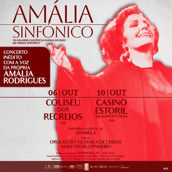 No ano em que se assinala o 25º aniversário do desaparecimento de Amália Rodrigues, o espetáculo “Amália Sinfónico -As grandes canções da rainha do fado em versão sinfónica” promete lembrar, e fazer sentir o espírito da fadista, numa homenagem ímpar, dias 6 e 10 de outubro, em Lisboa e no Estoril, respetivamente.