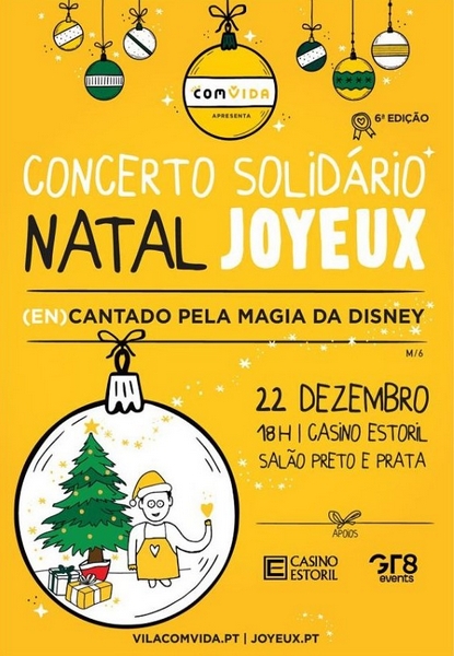 O Salão Preto e Prata do Casino Estoril recebe, no próximo dia 22 de Dezembro, pelas 18 horas, o concerto solidário Natal Joyeux, organizado pela Associação VilacomVida. Trata-se de um espectáculo imperdível que promete encantar o público com os clássicos da Disney!