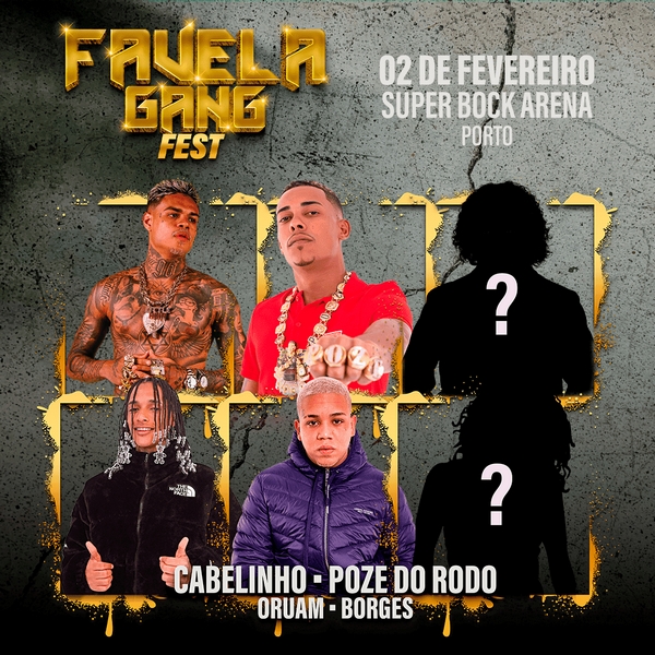 Favela Gang Fest, a mais nova celebração da cultura hip-hop, promete transformar a Super Bock Arena, no Porto, na grande casa do rap no norte de Portugal. Pela primeira vez, no dia 2 de fevereiro , o evento reúne um line-up bombástico, destacando alguns dos maiores nomes da cena do rap/ trap brasileiro, incluindo Cabelinho, Poze do Rodo, Borges, Oruam e muitos outros.