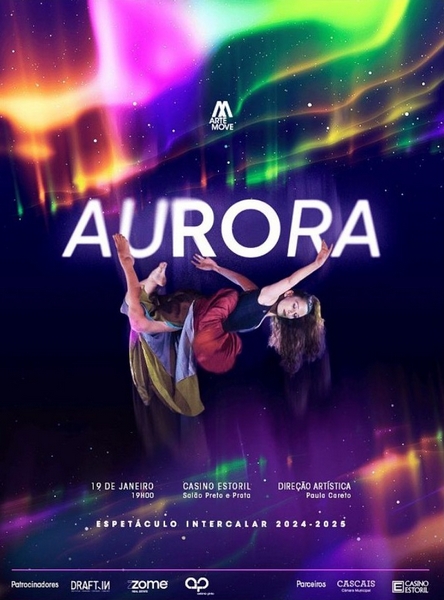 O Salão Preto e Prata do Casino Estoril acolhe, no próximo dia 19 de janeiro, pelas 19 horas, “Aurora”, espectáculo intercalar 2024/2025 da Artemove, escola de dança, com a direcção artística de Paula Careto. M/3. Preço: 13,5€ a 16€.