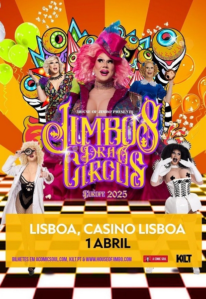 Com um conceito original, JIMBO's Drag Circus é um hilariante espectáculo de variedades, onde se distingue a comédia ousada da vencedora do RuPaul’s Drag Race All-Star, JIMBO The Drag Clown! O público poderá acompanhar uma viagem bizarra e mágica, com música original, trajes excêntricos e números de fazer parar a estrada!