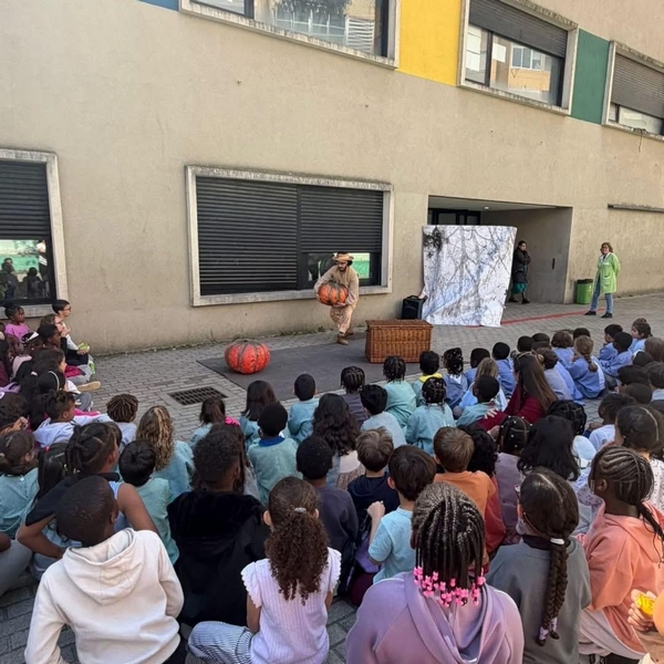 Assistiram os alunos dos 3 aos 10 à peça de teatro: As Três Abóboras, para as escolas da freguesia da Mina de Água - Amadora.