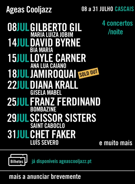 O último dia do festival ganha assim mais uma confirmação, com duas estreias no Hipódromo Manuel Possolo, em Cascais. O festival conta com confirmações como Gilberto Gil, Maria Luiza Jobim (8 Julho), David Byrne, Bia Maria (14 Julho), Loyle Carner, Ana Lua Caiano (15 Julho), Jamiroquai (18 Julho – esgotado), Diana Krall, Gisela Mabel (22 Julho), Franz Ferdinand, Bombazine (25 Julho), Scissor Sisters, Saint Caboclo (29 Julho) e Chet Faker, Luís Severo (31 Julho) na edição de 2026 do Ageas Cooljazz, no Hipódromo Manuel Possolo, em Cascais.