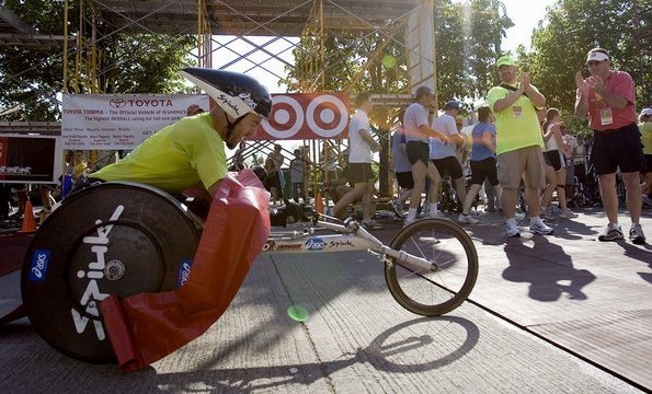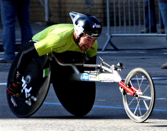 A minha deficiência deve-se a um acidente enquanto treinava ciclismo.
