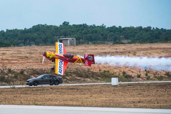 para uma coreografia aeronáutica ao som de Strauss, cortesia do piloto espanhol Castor Fantoba, que ainda protagonizou uma corrida entre o seu avião Sukhoi SU-26M e um BMW M2 da marca oficial que apoiou este evento, vencida pelo... BMW por escassos milésimos de segundo; ou até mesmo a passagem de dois aviões F-16 da Força Aérea Portuguesa a baixa altitude, o que levou o público ao rubro.