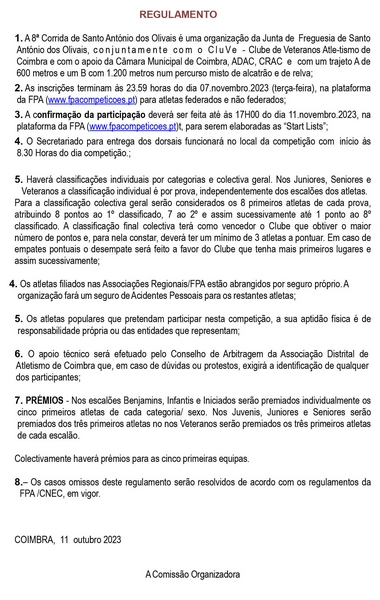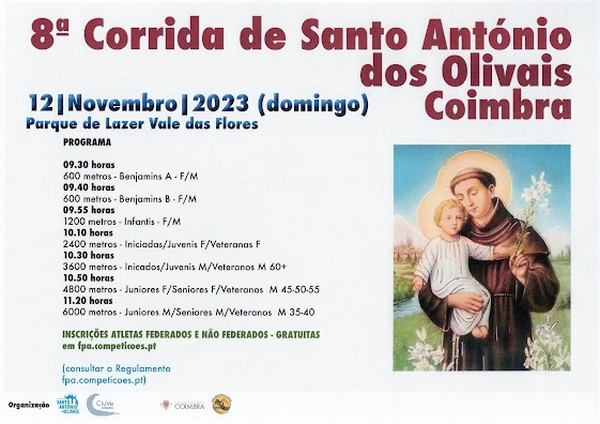 8ª Corrida de Santo António dos Olivais" em CoimbraPublicado em terça-feira, 17 de outubro de 2023 | Imprimir fShare Tweet Anterior Seguinte