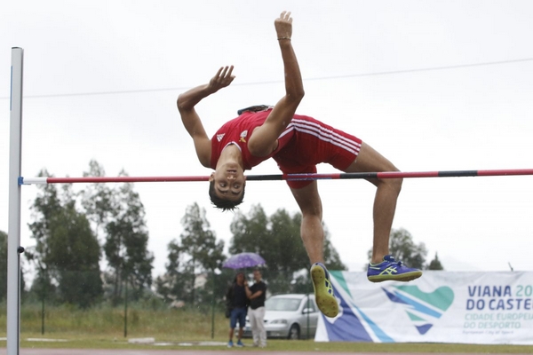 Rodrigo Alcobia, do Benfica, somou a renovação do título de campeão de salto com vara sub-18 conquistada ontem à do salto em altura, que venceu hoje, em condições atmosféricas muito difíceis, com a marca de 1,90 metros.