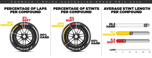 Nesta altura do ano, na Austrália, o verão dá lugar ao outono e o clima pode ser muito variável, com grandes oscilações de temperatura de um dia para o outro e a possibilidade frequente de chuva. Tal cenário pode levar à estreia do novo pneu de chuva extrema (Full Wet), cujas alterações incluem um novo desenho da banda de rodagem para reduzir o movimento dos blocos, evitando o sobreaquecimento, enquanto o composto utilizado está mais próximo do pneu Intermédio, o que pode proporcionar-lhe um intervalo operacional mais amplo em condições transitórias.