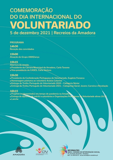 No próximo dia 5 de dezembro, assinala-se o Dia Internacional do Voluntariado, data proclamada em dezembro de 1985 pelas Nações Unidas e a Câmara Municipal da Amadora comemora esta data, nos Recreios da Amadora, entre as 14h30 e as 17h00, com uma cerimónia de homenagem aos voluntários da Amadora e a entrega do Troféu Português do Voluntariado 2020 e 2021.