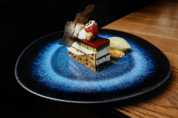 Inspirado no aclamado Chocolate do Dubai, o Dubai Delights é uma criação que combina uma base delicada de bolo de pistáchio com camadas ricas de chocolate, pistáchio e crocante de feuilletine. A harmonia de texturas é complementada pela vivacidade do gel de framboesa e pela suavidade da mousse de chocolate branco, resultando numa fusão equilibrada de sabores que evocam a celebração e a sofisticação.