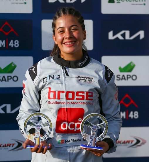 Mariana Machado também entrou com o pé direito. Os muitos adversários em pista não a intimidaram e logo na primeira manga qualificação consegue o segundo posto: “Foi um início muito bom. O kart estava bom e senti-me muito confortável. O segundo lugar na manga de qualificação mostra isso mesmo. Dei tudo o que tinha na corrida e consegui o terceiro lugar. Foi muito bom regressar aos pódios. O dia de domingo já não correu tão bem e fui 10ª classificada na MQ2 e na corrida 2. Mas no geral foi um óptimo fim-de-semana. Esta é uma das grelhas mais competitivas de sempre e foi bom poder mostrar que consigo andar na frente e lutar por pódios e vitórias”, disse.